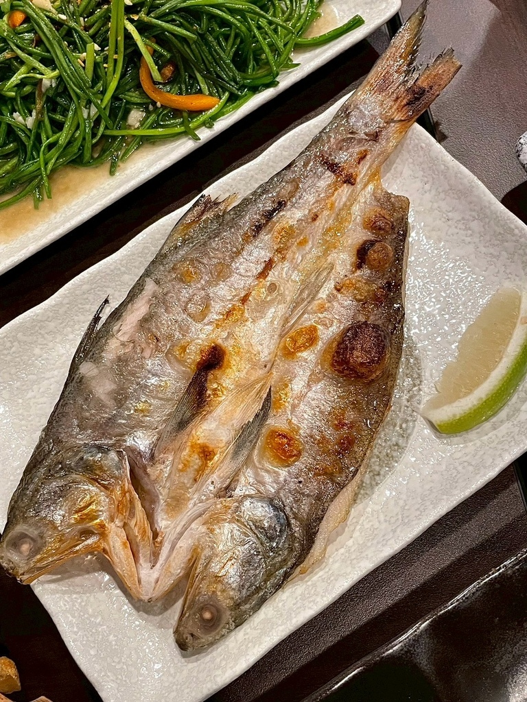 魚皮焦香、魚肉緊實,沒有過多調味,但有著淡淡鹹香,真的很適合當下酒菜